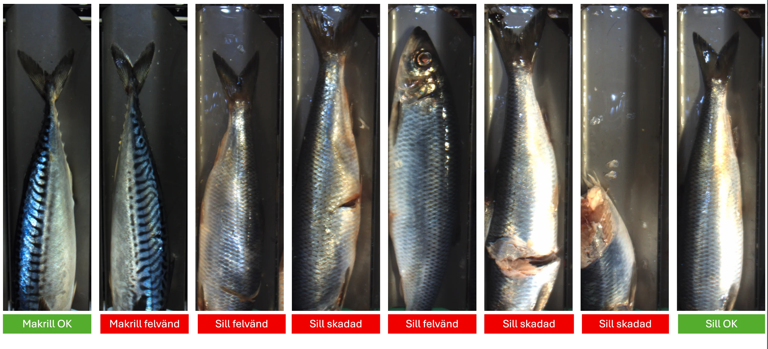 I stället togs en AI-baserad visionlösning fram, där AI används som ett kraftfullt verktyg för att tolka komplexa variationer i form, storlek och utseende. Med hjälp av AI får klassificeras fisken som OK, felvänd eller skadad.